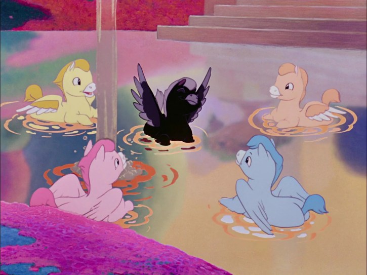 First on, this is Ssips fruit punch juice boxes: sweet and tart, yes, but what set Ssips apart was how DARK and PURPLE it tastes to me. (Do not drink BPAL perfume oil, please.) The lilac and wine are such a good pairing, here. I can’t usually wear a wine scent–it’s just a little too tart for me. But here, with the lilac, it is the best of itself–and the lilac, too, is not taking over as a floral. I’m left with this thing that is neither alcoholic nor floral, and more like a thing we can’t actually get in the world… It makes me think of the water, in the scene of Fantasia with the pegasi. For whatever that’s worth.